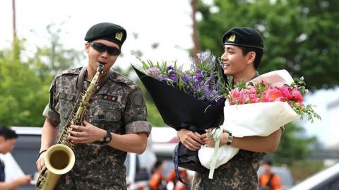 Earlier during their discharge in Chuncheon, RM thanked fans for waiting for them to complete their national duties.
