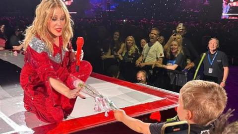 "[Kylie] starts The Loco-Motion on the main stage, works her way over to the satellite stage, which is where we were stood."