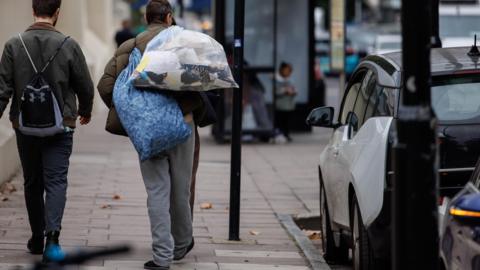 He walks across London to meet us but he has no money for a bus. He says he has a travel ticket given to him when leaving prison, but bus drivers don’t often accept them.