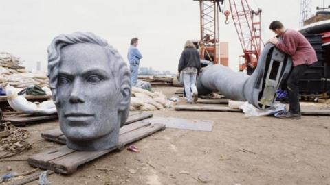 In June 1995, a giant statue of Michael Jackson provided a surreal sight in the heart of London when it was floated on a barge down the River Thames.