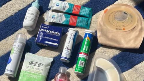 The stoma, a small hole in her abdomen, removes the waste from her body into the fitted bag, which Lucy has to regularly empty.