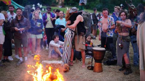 And with the main line-up not starting until Friday, crowds also flocked to the traditional opening fire ceremony in the Green Fields' Sacred Space.