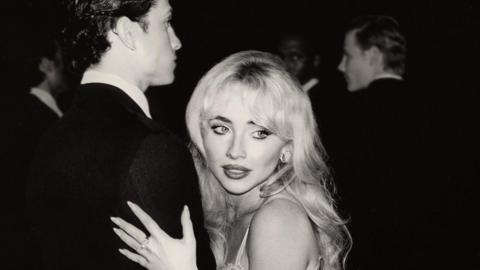 Earlier in June, the Espresso singer shared art for her album, Man's Best Friend, which shows her on her hands and knees in a black minidress with a suited man grabbing her hair.