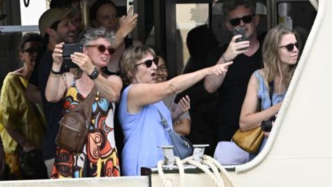 Excited onlookers spotted Jeff Bezos on his way to San Giorgio island in Venice