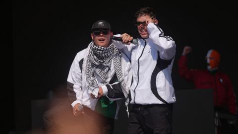Kneecap: Moglai Bap and Mo Chara of Kneecap perform to a huge crowd on the West Holts stage.
