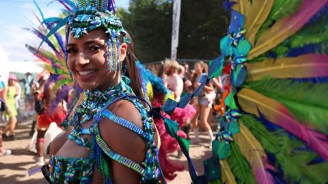 Colour and glitter: Carnival performers put on a show on the festival site.