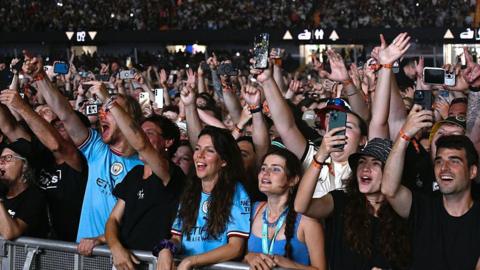 The city was awash in bucket hats and branded tracksuit tops. Outside the stadium, an enterprising busker drew a massive crowd by playing a set of Oasis songs. Everyone joined in.