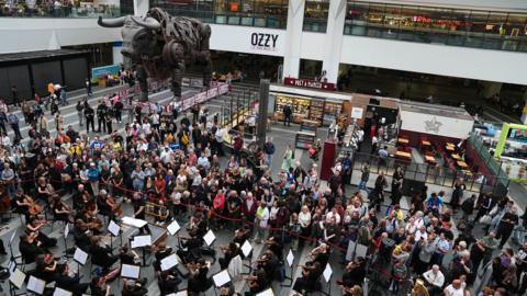 A classical ensemble performed at Birmingham New Street train station as part of the CBSO in the City programme, which included Black Sabbath pieces.