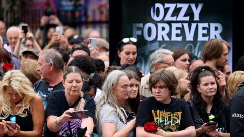 The large crowd created a highly-charged atmosphere, giving the heavy metal star a respectful but fittingly raucous send-off as they chanted: "Ozzy! Ozzy! Ozzy!"