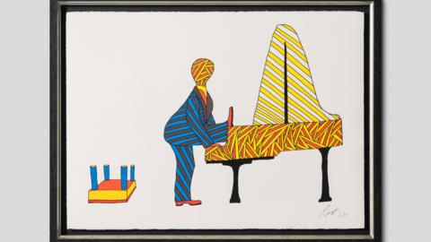 One of the artworks is Saturday Night which shows a rock 'n' roll piano player in action.