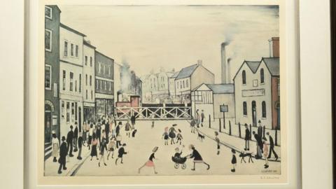 A signed LS Lowry print showing a town's now-vanished level crossing has sold at auction just a few miles away from the scene it depicts.