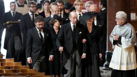 The Prince and Princess of Wales, among those who have paid warm tributes to the widely-respected, music-loving duchess, have joined mourners at the Requiem Mass, alongside the Duke of Kent and their three children.