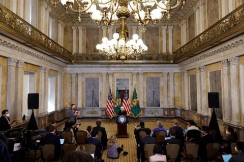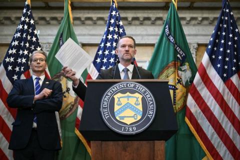 And they delivered it in the middle of last week to a small number of people ushered into the Treasury and what is said to be the finest room in Washington DC, the ornate and marbled Cash Room, which hosted the inaugural reception for post-civil war president, Ulysses Grant.