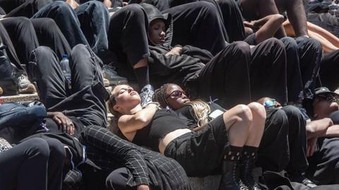 Women were urged to "withdraw from the economy for one day", and lie down for 15 minutes at 12:00 local time (10:00 GMT) in honour of the 15 females who are murdered in the country every day.
