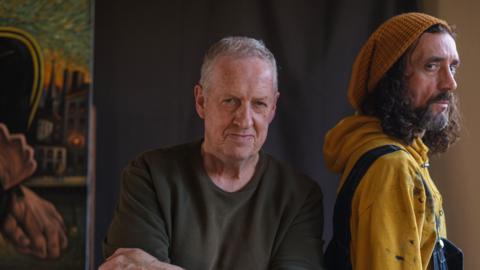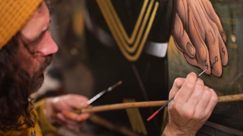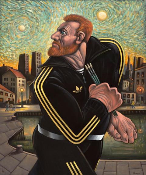 The pair have joined forces to create a painting of artist Vincent van Gogh, which combines Howson's powerful, muscular style with Muir's trademark twist of a retro Adidas tracksuit.