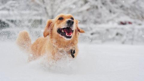 Be cautious when letting dogs off the lead in the snow, and supervise them closely as hazards may be hidden. Frozen water may not bear their weight.