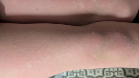 She has cold urticaria, a rare allergy which can cause her to have a reaction to as little as a gust of cool wind in summer.