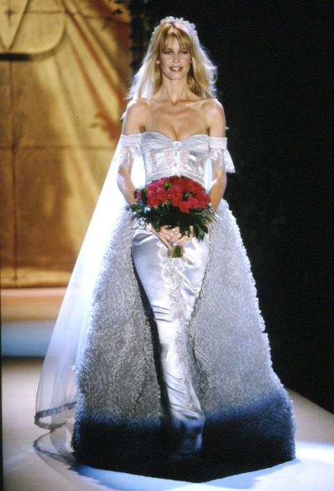 Model Claudia Schiffer in Valentino haute couture, 1995