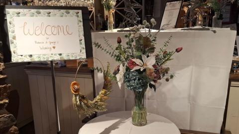 The couple had been staying the night before in an apartment above the Penny Farthing restaurant in Cowbridge, Vale of Glamorgan, and its general manager offered to host the wedding reception instead.
