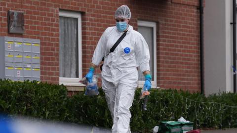 Joanne Pearson, 38, and Teohna Grant, 24, died at the scene in Santa Cruz Avenue, Bletchley, Milton Keynes and were found by police at about 18:36 GMT.