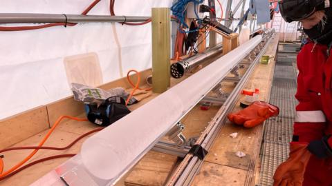 Working at temperatures of -35C, a team of scientists extracted a 2.8km-long cyclinder, or core, of ice - longer than eight Eiffel Towers end-to-end.