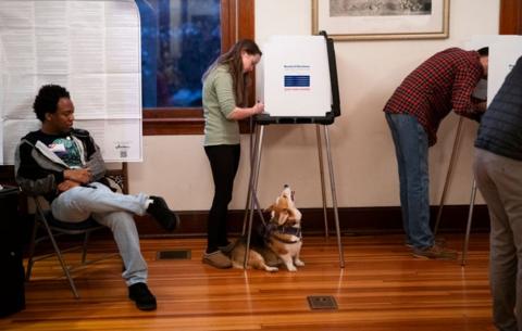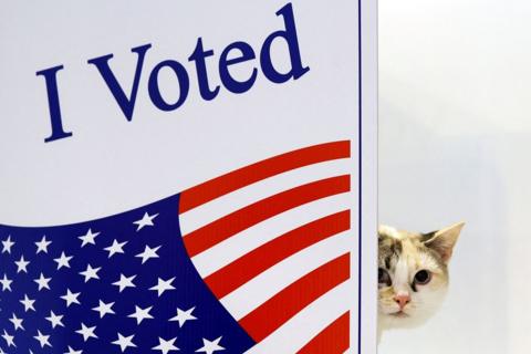 A cat named Sky observes voting at a polling place in Pittsburgh.