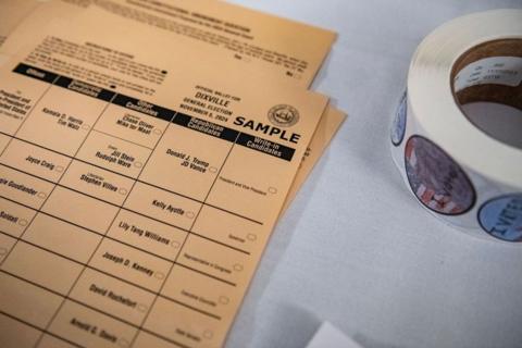 People cast their vote at Longley Elementary School in Maine's 2nd congressional district.