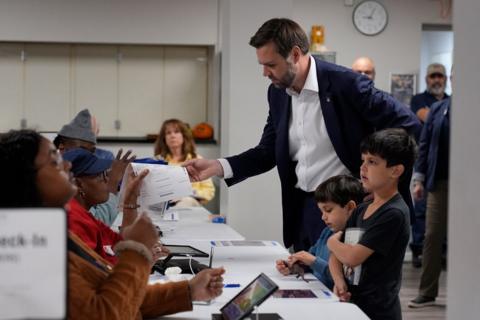 Donald Trump's running mate, JD Vance, voted in person in Cincinnati, Ohio. The Republican vice-presidential nominee arrived at a polling station with his wife and their children.